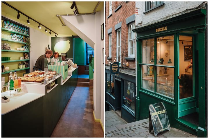 When you walk along Christmas Steps in Bristol, smell a mix of freshly baked bread and freshly brewed coffee, and see a small shop in lively shades of green, you’re bound to have a sweet, cozy time. Drizzle's loaf cakes are baked fresh every morning—with flavors changing daily—and their selection of drinks pairs delectably well, too.
